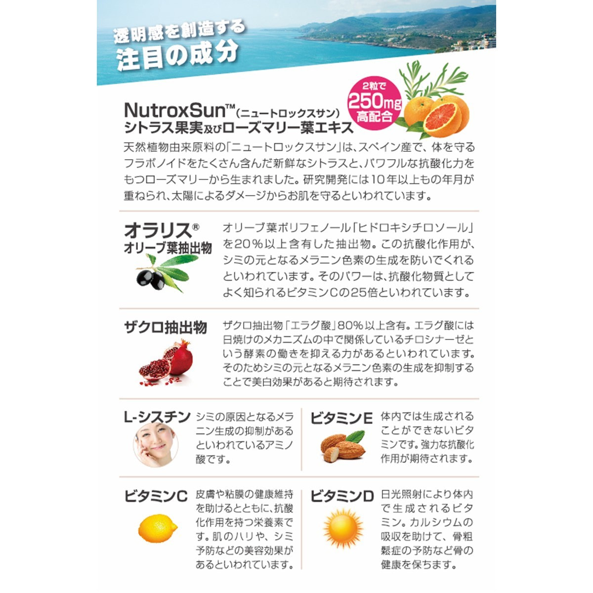 きらめく太陽のように自らを輝かせ、透明感のある華やかさを目指す女性に続けてほしいサプリメントです。
